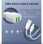 شارژر دیواری الدینیو مدل A3310Q به همراه کابل microUSB